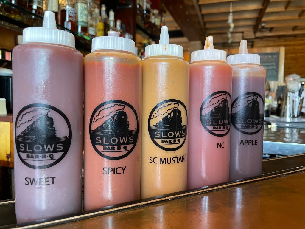 And before you think I’m crazy, no, I didn’t just eat all of that barbecue WITHOUT any sauce! I figured I would focus on the food first before giving a shout for the Slow’s sauces on deck.