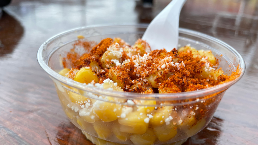 Without having to worry about rain any longer, I took more time inspecting and comparing menus in this sector. I ultimately decided to grab some elote (Mexican street corn) in a cup from Baja Tacos. I wanted something simple and light for this mid-adventure snack. After giving the corn a couple of stirs, everything had mixed well evenly. Every bite matched and delivered a good, zesty, buttery street corn. It was just what I needed, and while consuming the corn, I quickly spotted my next endeavor.