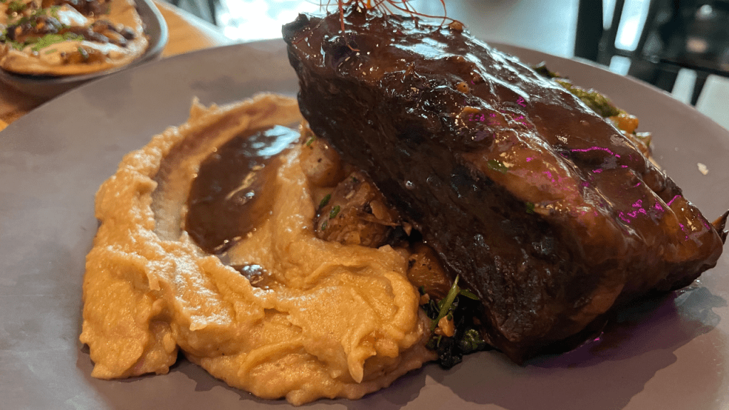 And last but not least, the Koji Braised Short Rib! Koji is a type of Japanese marinade that incorporates savory and subtle sweet notes and is great for tenderizing meats thanks to the enzymes it contains. Cozadd’s crew utilizes the red wine braise as well for the meat, so as you can imagine, there’s a lot of prep and care that goes into this dish. I forked into the meat with little resistance and was pleased to see a solid cook and tenderization. By this point, I was rather full and could only manage a few bites, but I most definitely enjoyed each one. While not the best braised short rib I’ve ever had, it was still pretty darn good. The marinade and braise pulled off some great flavors, with the gravy drenched across the top, sealing the deal. That gravy also accentuated the creamy black garlic whipped potatoes. I also enjoyed the well-seasoned vegetable medley, although I felt they could have used another minute or two being cooked to be a bit softer. A delectable entrée for special occasions or when desiring the fine-dining experience!