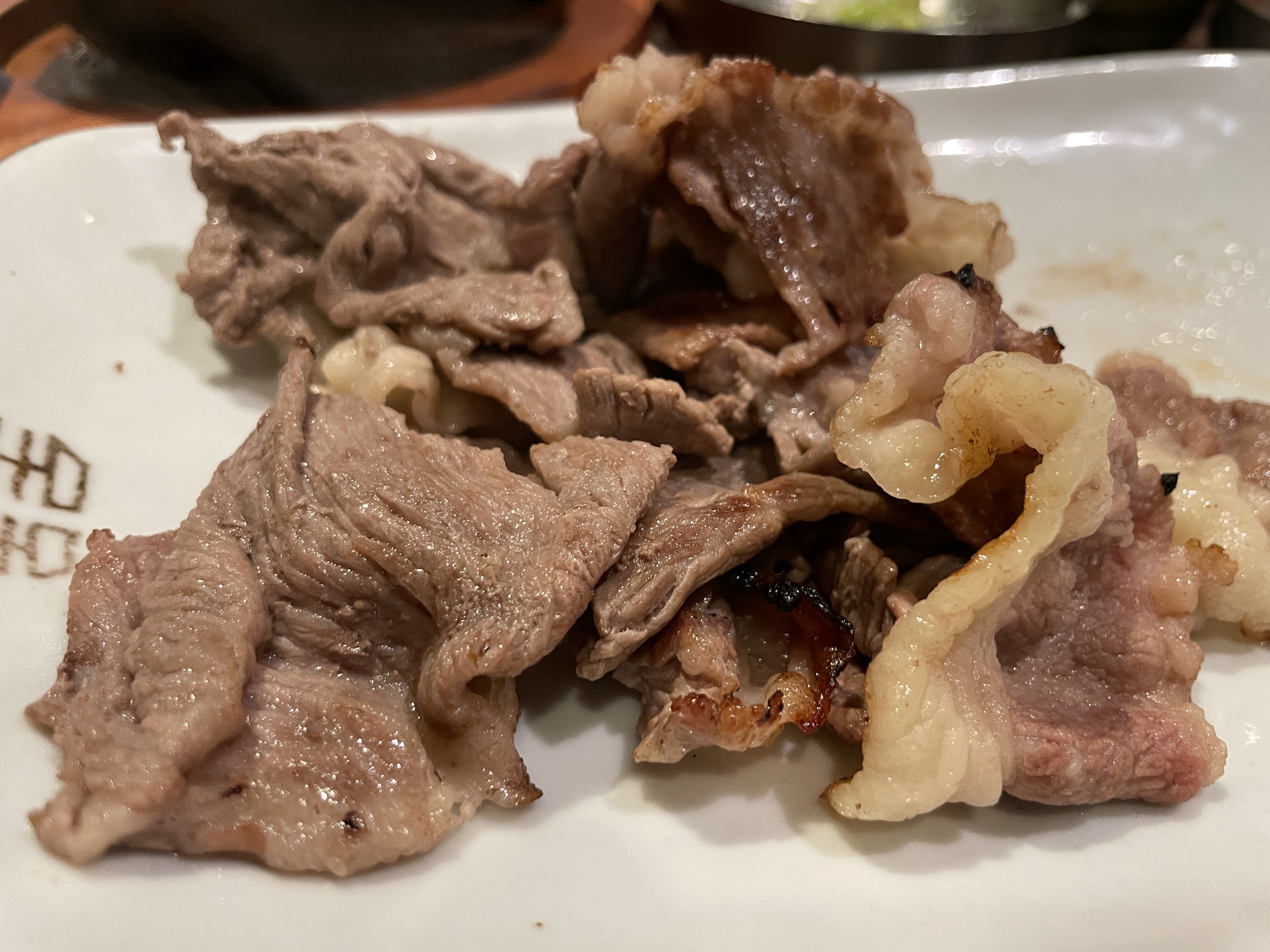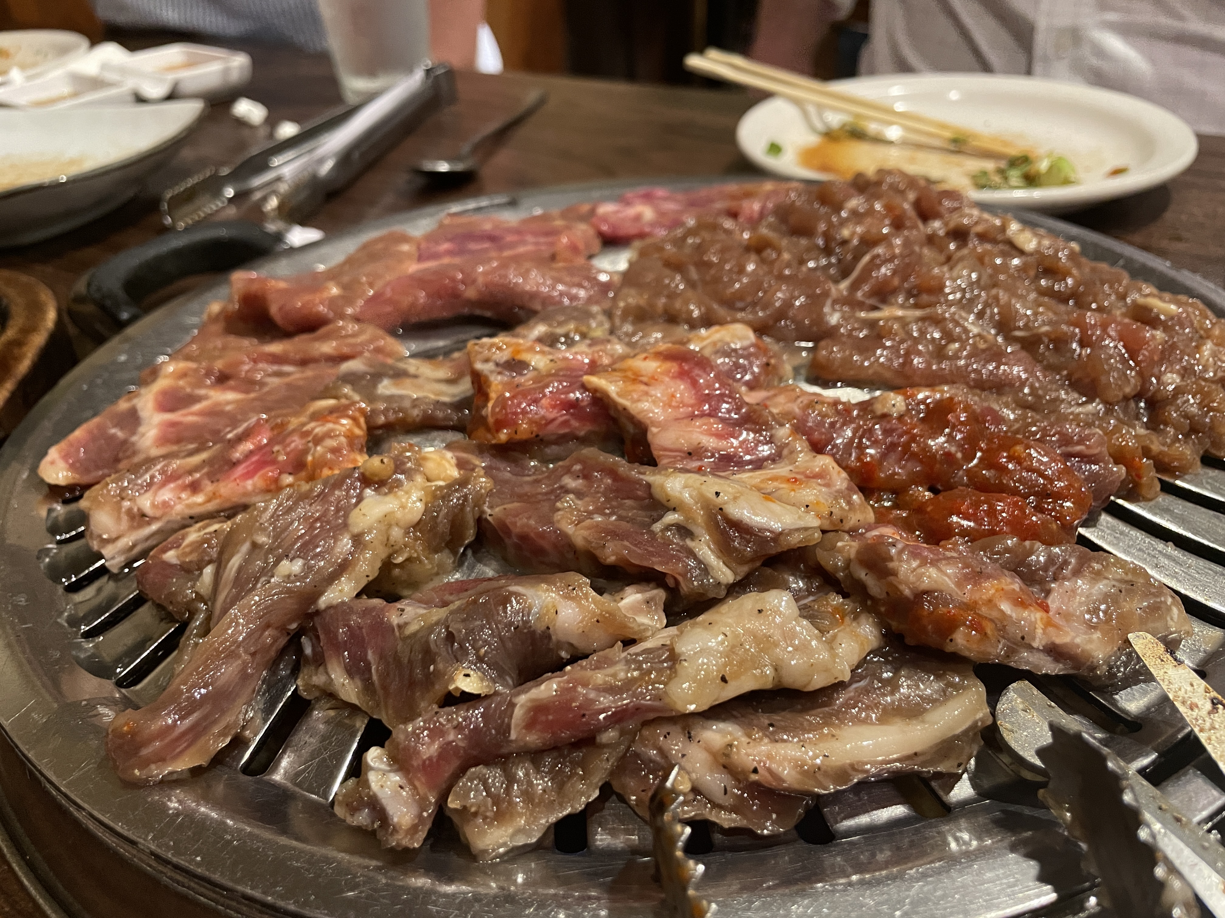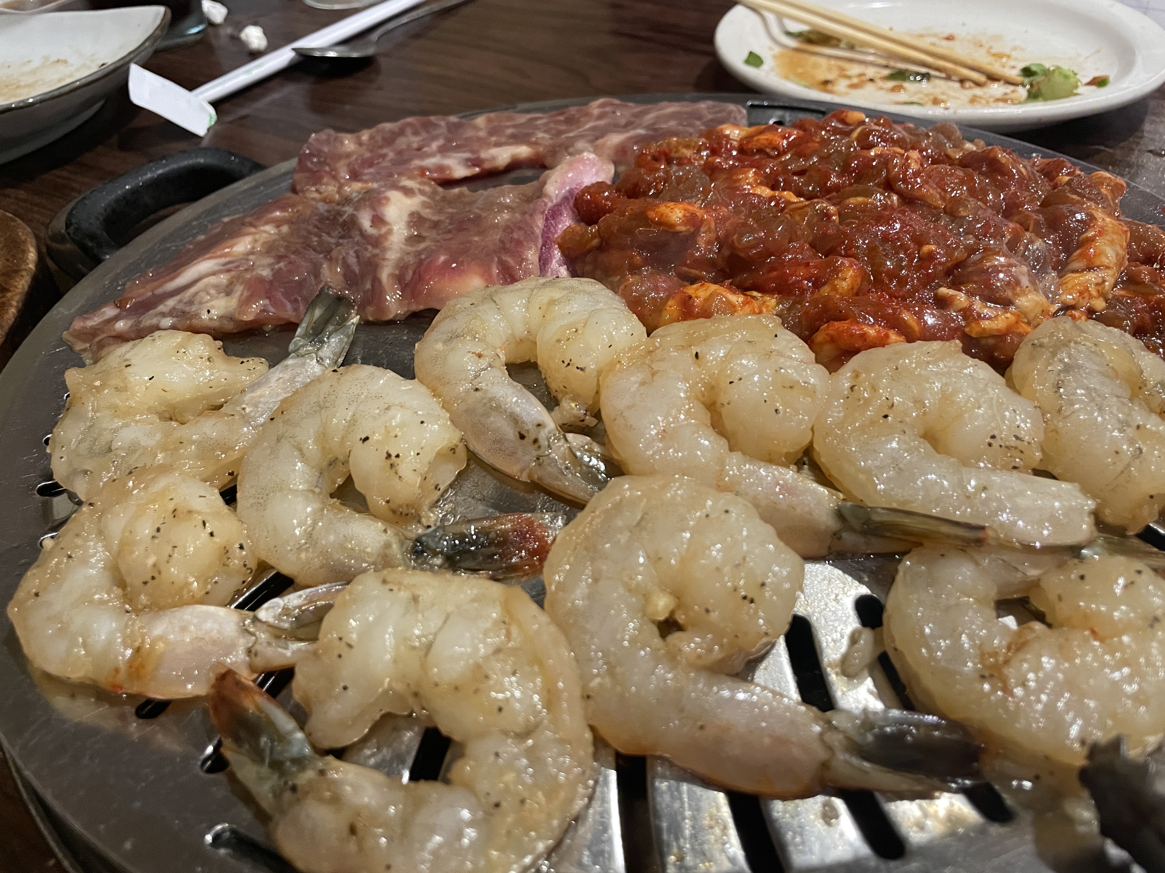 Over the next 15 minutes, we attempted the remaining meats as best we could. We nearly finished all the remaining food, from the marinated ribs, bulgogi, pork ribs, marinated beef short ribs, spicy pork, and shrimp. There may have been a few leftover bites, but overall, I was proud of what we put away food-wise as a group. The bulgogi was exploding in flavor and was one of the favorites at the table. The marinade and seasonings really made that meat pop, giving it a mildly sweet and smokey flavor out of the gate and then giving way to some garlic and ginger aftertones and a hint of heat. The second favorite was the spicy pork, which packed the heat and delivered another eye-opening experience for its top-notch flavors from bite to swallow.