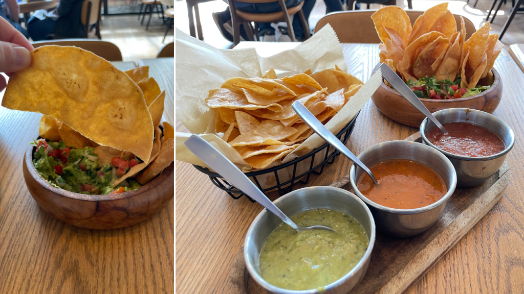 I kicked things off with the staples of any Mexican restaurant: chips and salsa, guac, beans, and rice. The chips and salsas arrived first, along with the classic guacamole.