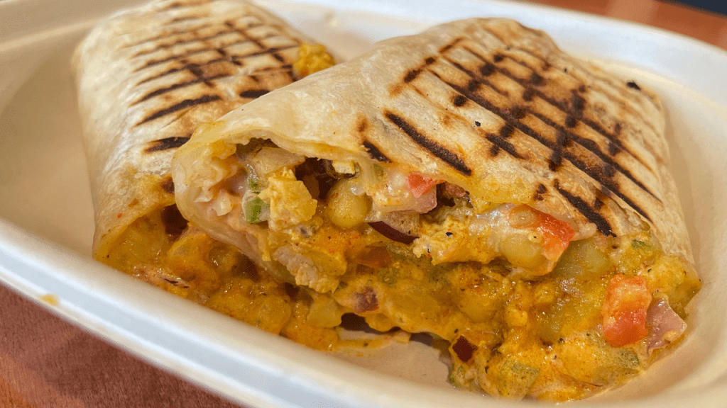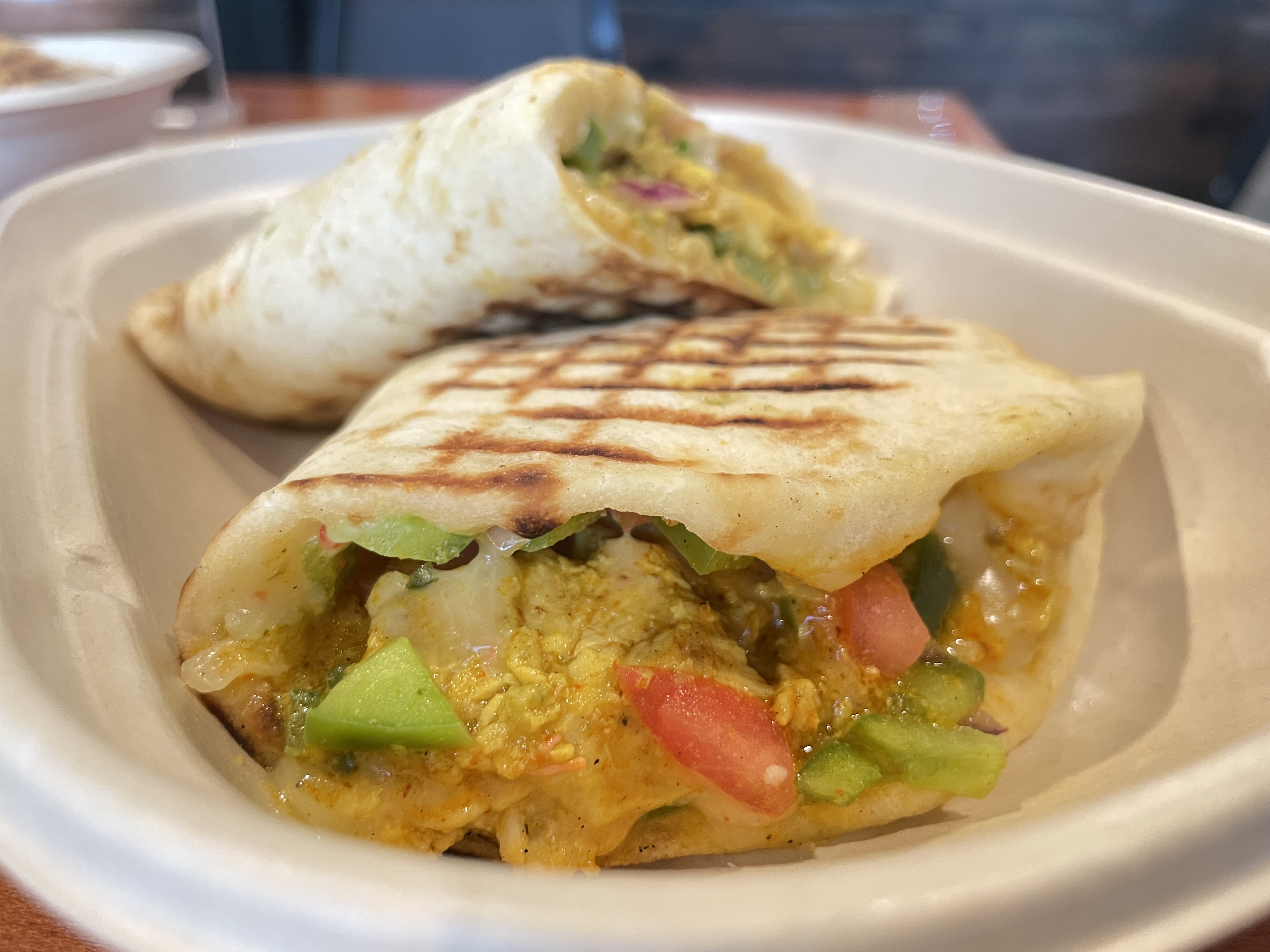 Mixed Hot Wrap (chicken tikka and aloo): I was excited the second I picked up one of those halves below and felt how heavy it was. It’s truly encouraging when you pick up a stuffed wrap overflowing with ingredients, two different but phenomenal sauces, and juicy chicken. And the bread is toasted to perfection, resulting in a great but light crunch with every bite. The tandoori and curry sauces brought great heat and earthy flavors, soaking the chicken tikka and vegetables. The addition of the cheese blend again comes in like the zesty glue to hold and encase the interior contents in a web of spicy cheddar heaven. The chicken was well spiced, just enough to kick up additional flavors waiting to be activated. Aloo, which is potatoes in Punjab, gave a noted starchy presence and a nice texture differentiation amid all of the other ingredients and tender chicken. While the heat was definitely kicked up a bit due to the tandoori sauce, I loved every bite of it and can’t wait to get this wrap again the next time I return to Mithai & Chai.