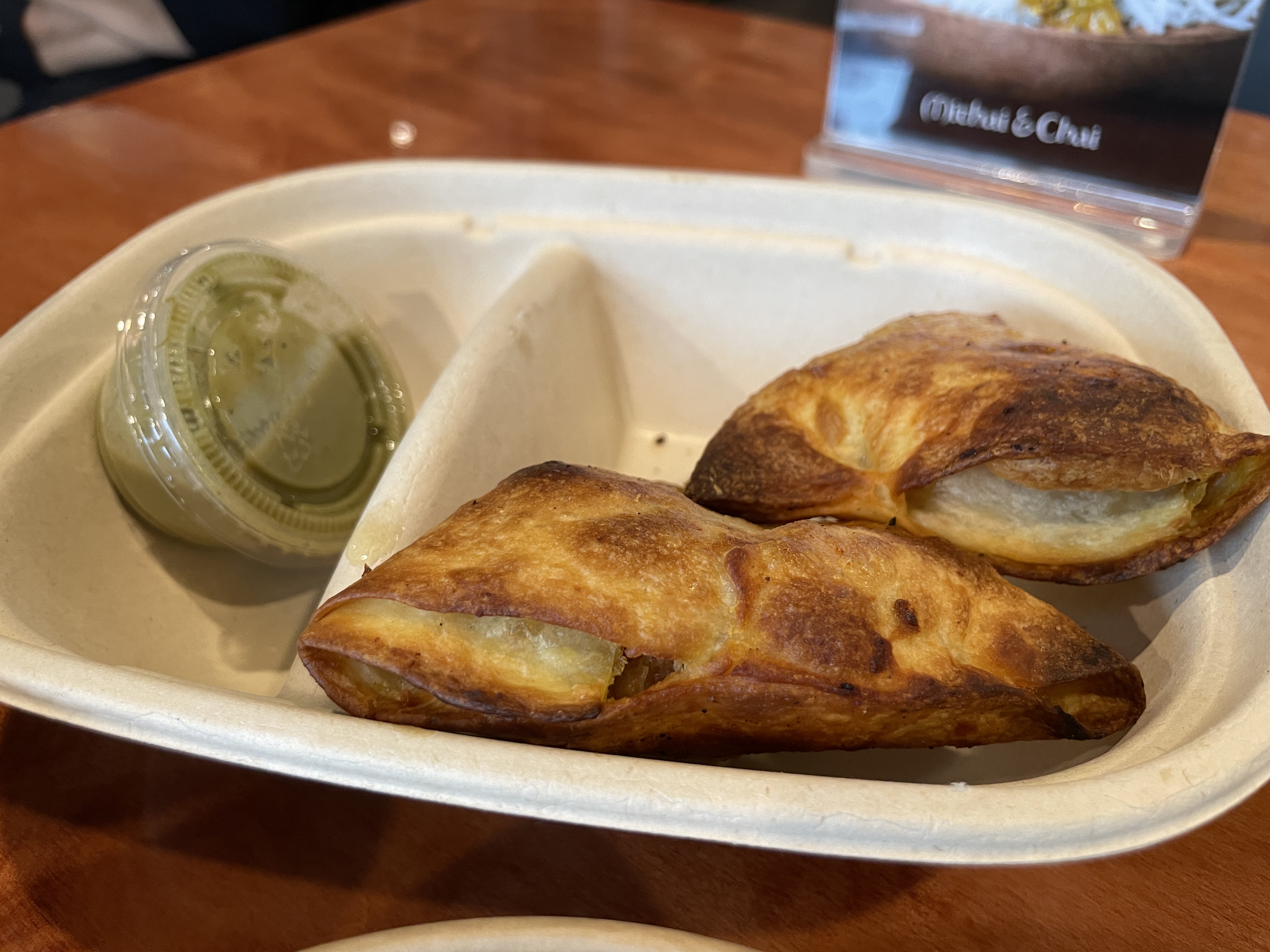 Samosas/Rice Pudding: Knowing that the samosas are made in a healthier effort is very appreciative, and if anything, the air fry works even better for keeping that dough airy and very easy and soft to bite and tear into. The aloo interior is warm and doughy, with the roasted potatoes doing a great job holding down the interior. I was very much a fan of these samosas, especially with the tangy and moderately spicy chutney sauce. These definitely hit the spot.