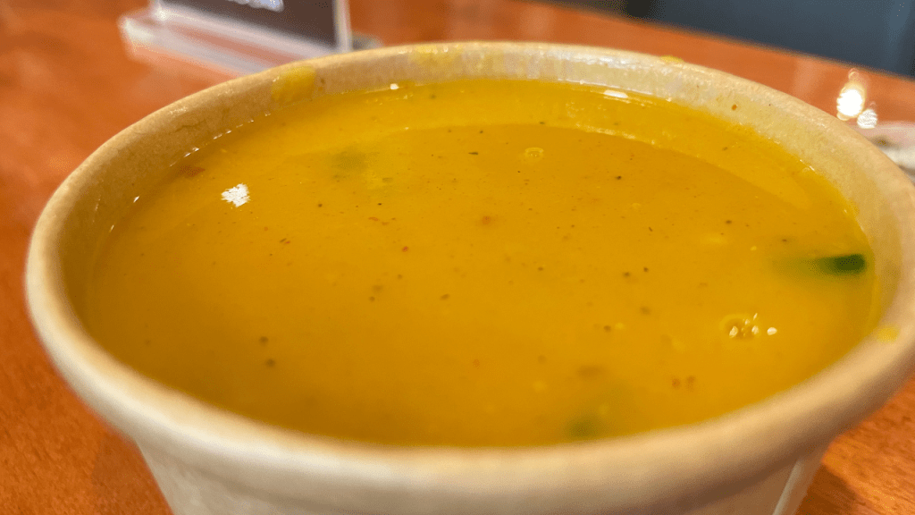 Butternut Squash Curry Soup: I enjoyed every spoonful of this seasonally perfect soup! I loved the back end low hum of spice, with flavorful impact from the butternut squash. The soup was on point for the season, bringing everything and more. It is definitely a great choice (if available). I could eat bowls of this soup throughout a picturesque Fall day in Michigan and be a happy camper.