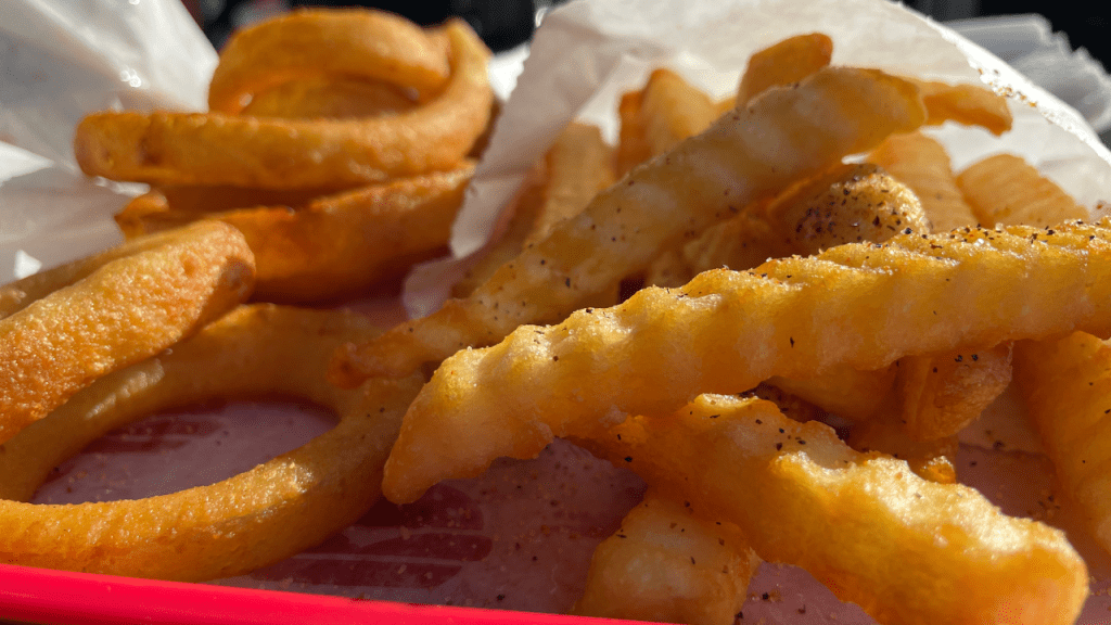 On Wednesday, I drove west on 9 Mile Road through downtown Ferndale until I reached Savvy Sliders at the intersection of Pinecrest Drive around noon. Once inside, I met with Savvy Sliders/Happy’s Pizza Vice President of Business Development Mark Wolok. Mark greeted me and gave me a great breakdown of the menu and different combo options. I ordered two sliders, fries, onion rings, and a drink. For the main slider attraction, I felt like being different and ordered the Mushroom Swiss and Boomin’ Chicken. They both looked very tasty, and I recalled really enjoying the boom sauce from a previous order, so I was hyped to try the Boomin’ Chicken!