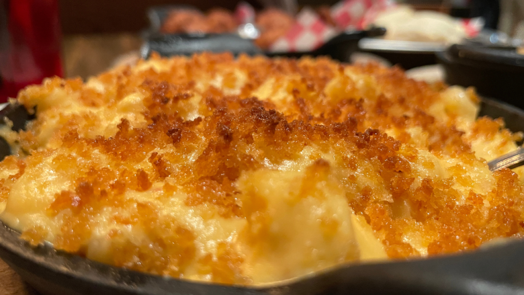 I gobbled up several bites of the Mac & Cheese. Almost immediately, my taste buds lit up like a Christmas tree, experiencing a deliciously gooey five-cheese blend delight that clung to and smothered the noodles. I thoroughly enjoyed the garlic breadcrumbs, which entirely covered the circumference of the dish, leaving hardly any gaps and ensuring that you’d get some garlicky crunch with every bite. I tasted notes of smokiness and even some heat within the cheese blend, providing good influences of different flavors while not having any particular one overwhelm the other. Needless to say, Laurie and I were BIG fans of this Mac & Cheese!