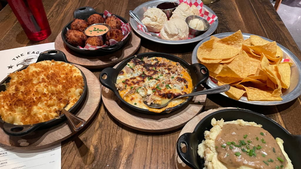 The interior of The Eagle had me reminiscing about my mid-20s, during which I briefly lived in the South. Early in my TV news career, I worked in Birmingham, Alabama, for the ABC affiliate. Although I was only in the South for just over a year, I managed to hop around a fair bit to several barbeque establishments and a few famous eateries throughout the region. While The Eagle was hatched and headquartered in Cincinnati, its menu features a fair amount of Southern influence with several of its dishes.