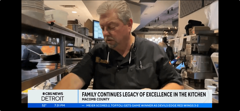 Fast forward a few months, and approximately one week ago, I got to share a more extensive feature about the Baldwin family for CBS Detroit. This time around, I told the story of the whole family, particularly the passing of the pan in the family business, and how a Detroit culinary icon’s legacy is being continued and expanded upon by the next generation. The feature focused on the impact and legacy of Jeff Baldwin, Executive Chef/Owner of J. Baldwin’s in Clinton Township, and how it’s inspiring his sons, Chef Michael and Director of Operations Jeffrey (jr.) Baldwin, to grow the family business while adding their own independent flair: