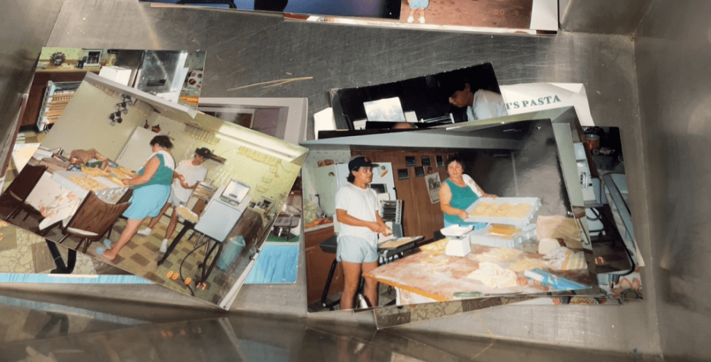 “One of the things that she made every Sunday, every holiday, was fresh pasta. Whether it was fresh long pasta or filled pasta, like cheese and meat ravioli for the holidays. But, every Sunday, she’d wake up early and make the fresh egg pasta and it’d be hanging around the table or dining room table. The sauce would be simmering. We’d go to church in the morning and come back in the afternoon and have our big Italian meal, our family and our immediate cousins, always 10, 15, 20 people. And she would use the fresh pasta, on Sunday, that’s the day that we would eat the real pasta,” Vince recalled. “So that’s how we started with the idea. We started in our basement with a small machine, the one I showed you there in the lobby, and took my mom’s recipe and had to reformulate it a little bit and took it on the road.”