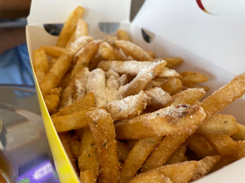 I started snagging and popping the frosted, soft fries into my mouth one by one after initially opening my combo box. The fries were cooked perfectly and had the perfect mash consistency, as one will often do with a small handful of 3-5 fries at a time. The “magic dust” seasoning that was cheesy and sweet, with a hint of garlic, made these fries stand out even more. The powder seasoning was fricken awesome, and I was obviously a fan since parm cheese was evidently involved in the concoction! While I try to be mindful of my caloric intake during meals, these fries made it challenging as I grabbed away at them throughout the luncheon while catching up with Dave.