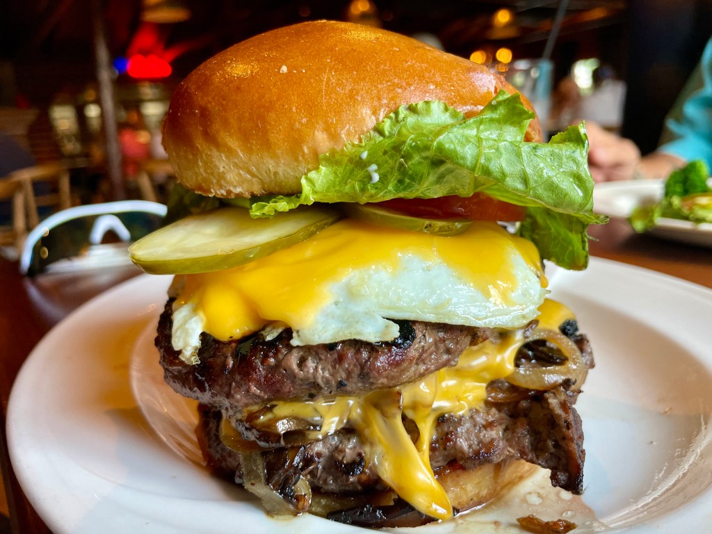The moment of truth came when it was time to place our food order. We decided to split an order of the Grilled Wings with the sauce on the side and then two orders of “The Big Rick.” Since our server was new, she wasn’t yet aware of this epic beast of a burger! So she and I learned its contents together for the first time from the OG Rick himself. The burger is an enhanced version of the Bison Burger, typically served with a 1/2 pound char-grilled bison patty, lettuce, tomato, onion, and sliced pickle on a brioche bun. However, the Big Rick consists of TWO 1/2 pound bison patties, with the addition of grilled onions, grilled mushrooms, and a fried egg topped with American cheese. As you’ll see below, this is quite simply one beautiful burger.