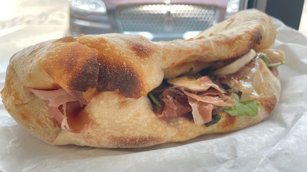 The dedication to using more authentic ingredients, including all of the delicious interior components of that sandwich, is appreciated. The pesto and slightly melted mozzarella with nice plops of olive oil were an instant delight when biting into this sandwich. There was a surprisingly copious amount of half-inch thick mozzarella slices hidden within the fold, all slightly softened by the warmth of the oven-baked bread and enhanced in flavor by the fresh and perfect olive oil. The prosciutto was on point, capping off this sandwich with another packed portion to ensure that rich salted meat would be included in every bite.