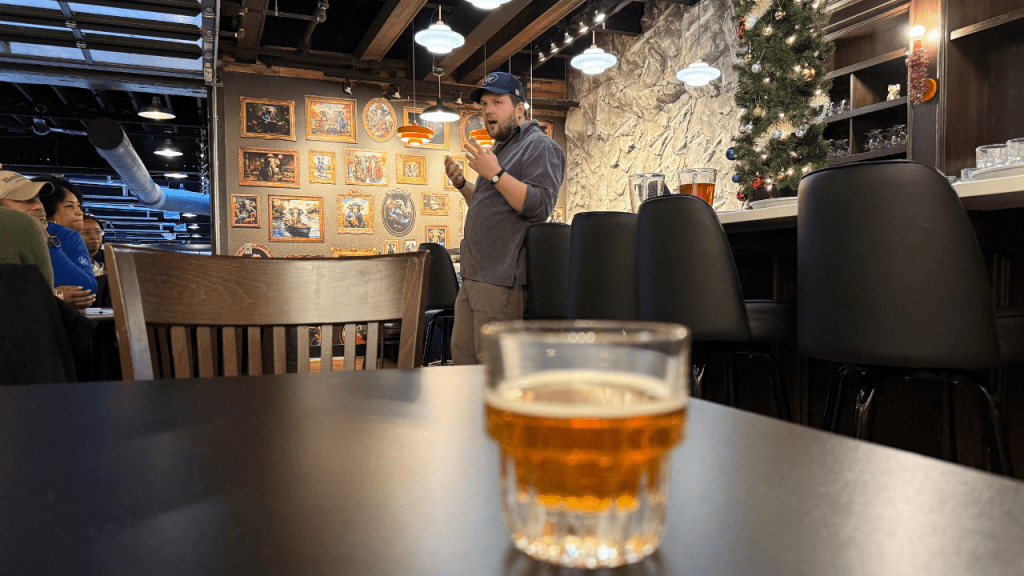 Pictured: Brewmaster Caleb breaking down the craft beer fermentation process
