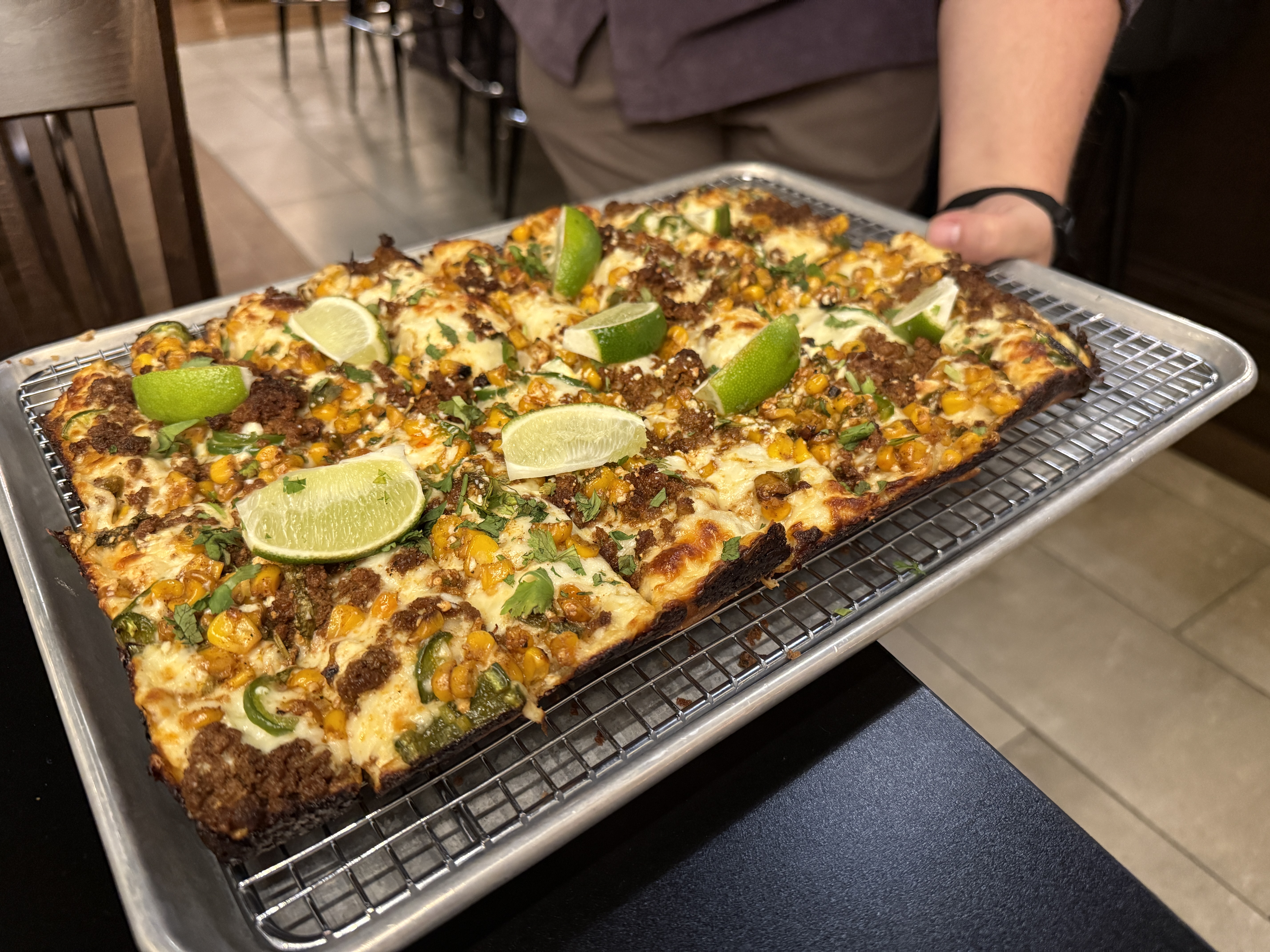 When it came to the pizzas, I was thoroughly impressed with the quality and creativity of the Elephant & Co. signatures. My two favorites were the Elote and Detroit Broc City! The Elote comes topped with a street corn blend, diced jalapeño, chorizo, and cotija cheese and garnished with cilantro and lime wedges. Not only was this pizza meticulously topped, but it was colorful and exploded in flavor. The lime really makes each slice stand out. After dousing the pizza with lime juice from a hearty squeeze, every zesty bite had some heat and savory meat. This is a pizza I would happily order upon every visit to an Elephant & Co. establishment.
