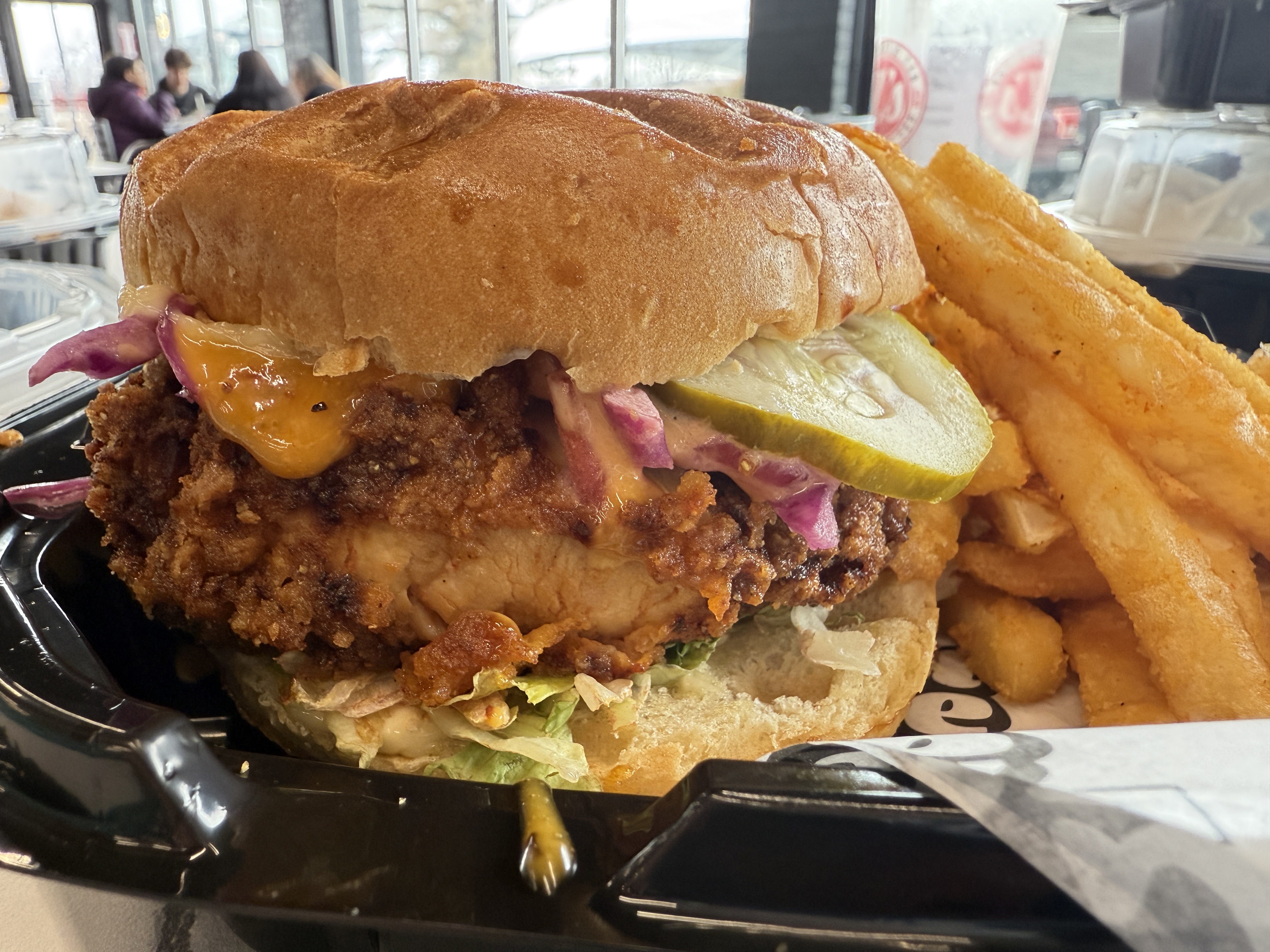 The Firebird Chicken Sandwich maintained its crispiness, and I was shocked when I picked up the sandwich and felt its sheer weight. A true two-handed clucker, that sandwich had two gigantic chicken fillets protruding from every side of the sandwich. There was a perfect amount of lettuce, mayo, dill pickles, and The Chicken Coupe’s signature coleslaw and Firebird sauce. The Firebird sauce oozed from underneath the top bun and really packed a solid heat and flavor that complemented the chicken impeccably. The sensational and overflowing sauce really stood out, smothering the perfectly cooked and quantifiably sizeable chicken fillets. The fresh pickles and bite from the slaw added some tremendous textures, twang, and crunch to a truly exceptional hot chicken sandwich. I highly recommend ordering that sandwich or checking out The Chicken Coupe!