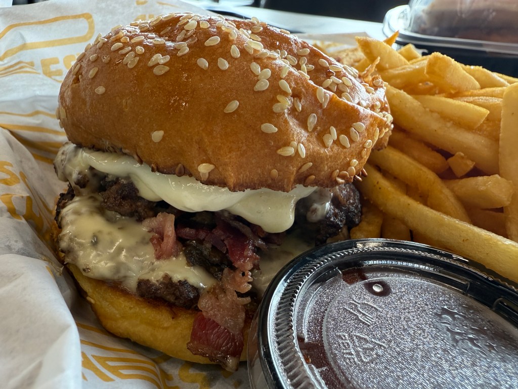 I looked through the various options offered by So Cheesy. I narrowed my choices down to either the Brisket Truffle, Hot Cheesus, or Truffle Smash burger and ultimately decided on the latter. The Truffle Smash came stacked with two smashed patties, which were seared nicely, with copious amounts of caramelized mushroom and onions. The Swiss cheese and its sharp taste were nuanced by the pungent truffle profile from the aioli, which cascaded its way down throughout the burger, blending with the cheese. The sweetened onions balanced the salty beef bacon strips and tasted so delectable. While I would definitely order this burger again, I’m keen on trying the Hot Cheesus next from So Cheesy for my next adventure out that way!