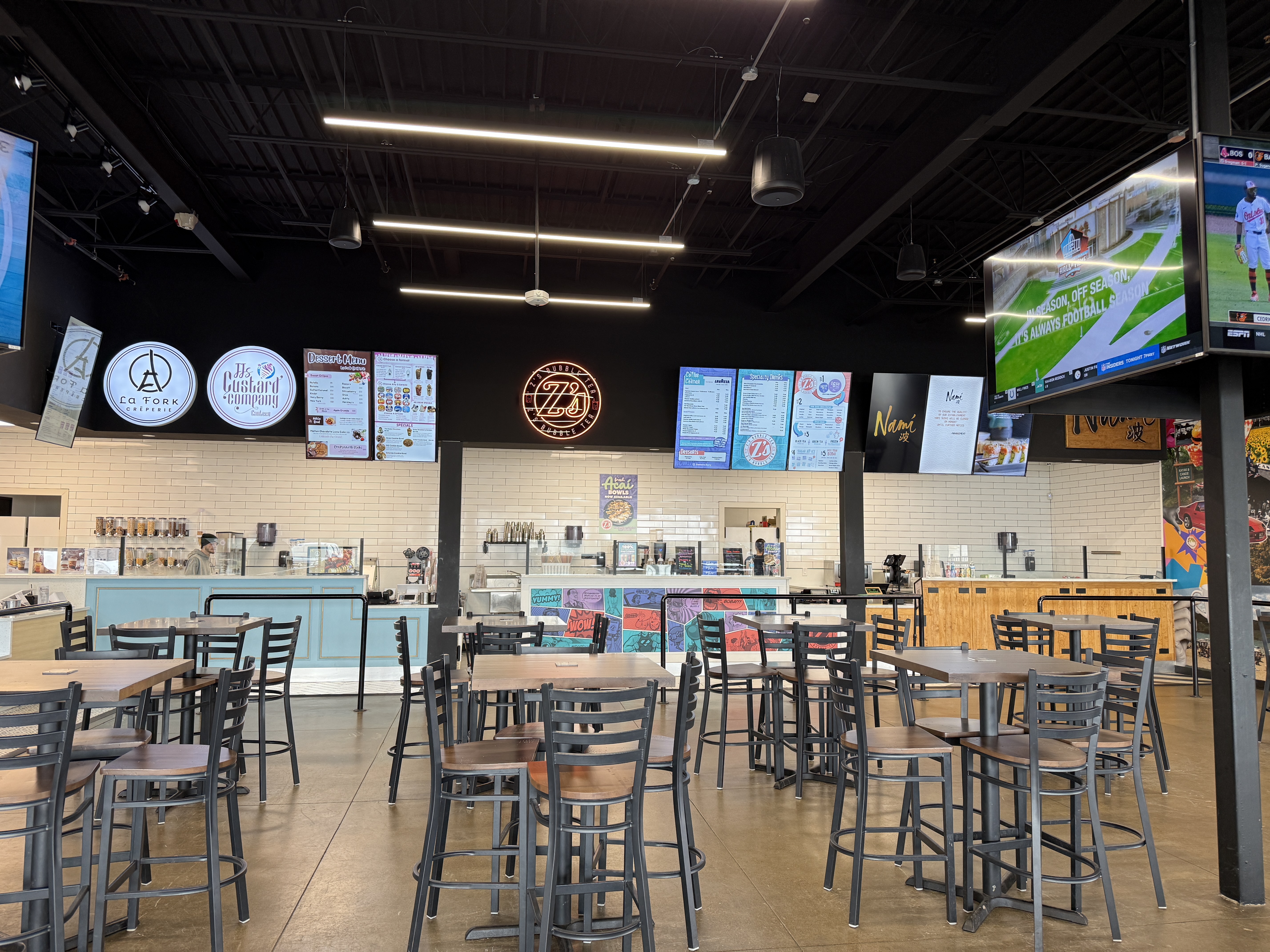 Some construction and setup were still taking place, just days out from opening night for Ramadan Village. Hassan and I met and chatted with the Canteen at Midtown’s owner, Hassan Chammi, as we walked inside. Chammi was very busy with all of the planning and moving parts for the night market, so we kept the convo brief and sat down at a table. One of the cool aspects of the food hall is that you can choose to either physically walk up to a food truck and place an order or scan a table-designated QR code to place an order with any vendor (or multiple) and have your meal(s) brought straight to your table!
