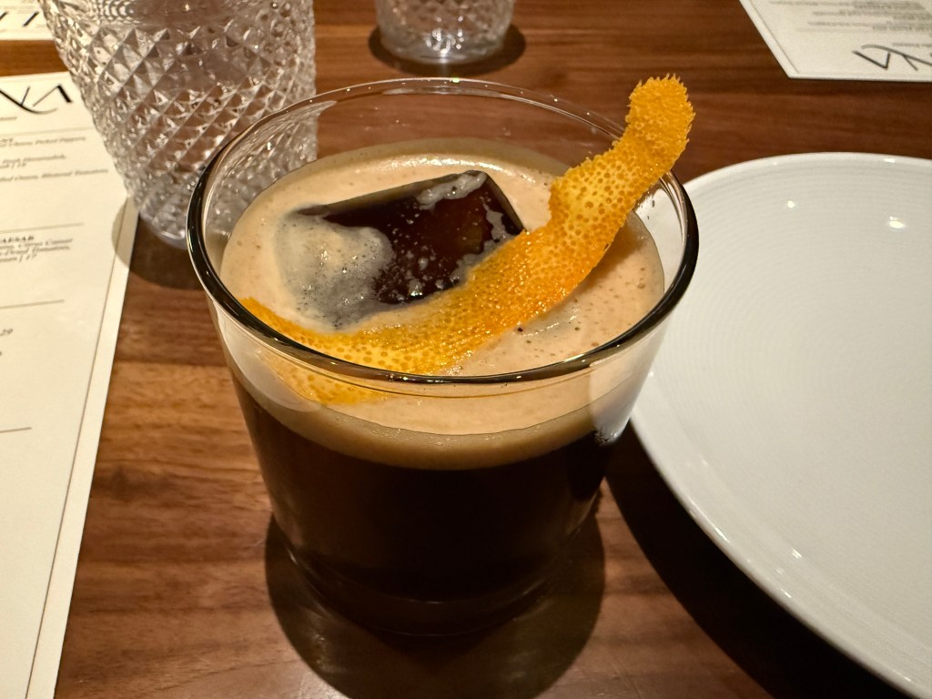 I sat next to my pal Vince, and we began catching up on the latest happenings from our week. I casually conversed and caught up with some other friends I hadn’t seen for some time. One of the menu items I was the most excited to try was Adelina’s Old Fashioned “Espresso,” at the adamant recommendation from Rob, a fellow Old Fashioned enthusiast. Rob stated it was the best Old Fashioned he had ever enjoyed during his first visit, so I was really excited to sip this enhanced classic!