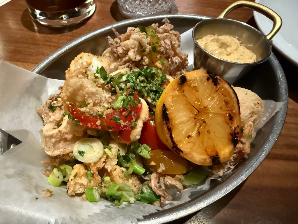 After deciding between a couple of the different starter options, I ordered the calamari (Pescado Frito on the menu) because it’s a dish I hadn’t enjoyed for some time. Usually, when I do order it, I’m at an upscale or fine-dining-type place, so I can usually count on it being really good. As you’ll see below, Adelina serves up its calamari rings with pickled hot peppers, scallions, and a side of citrus aioli.
