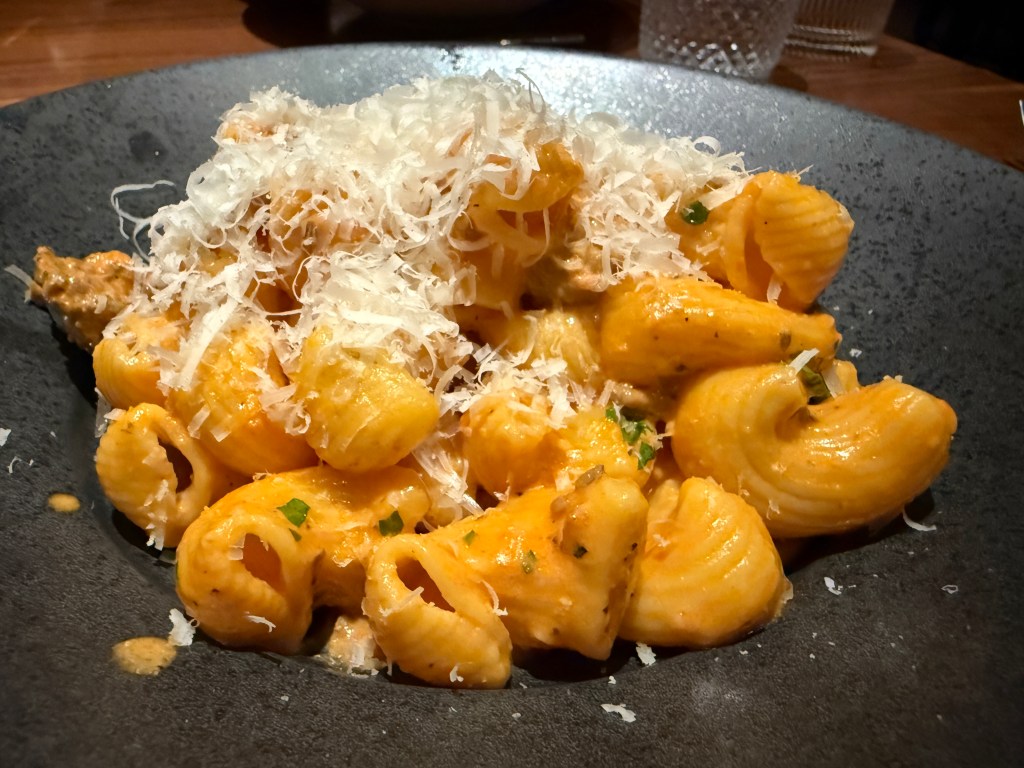 The sauce and Italian cheese choices were excellent. The grana padano was delicately shredded, adding a lovely rich and nutty flavor profile to the tomato-based sauce. The truffle added a nice neutralizing element between the two flavors to tie it all together, as the zesty and hearty chunks of sausage aided in every bite with the conchiglie pasta. I ate nearly every bite and thoroughly enjoyed this pasta dish.