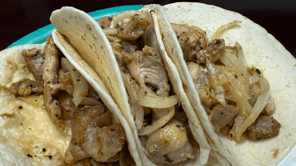 This dish really brought the flavor, with the chicken and onions standing out in their own way with their unique flavor profiles. When I sat down for dinner after work and tried some of the entrée, I really wished I had ordered fried rice. A hefty portion of rice is the only missing link to complete this dish. Thankfully, I remembered I had some leftover tortillas from making my Green Chili Chicken Enchiladas the previous week. So, I found a reasonable carb-y substitute and turned them into tacos. Again, rice would have definitely been the move to seal the deal with this order, but when in doubt — taco out!
