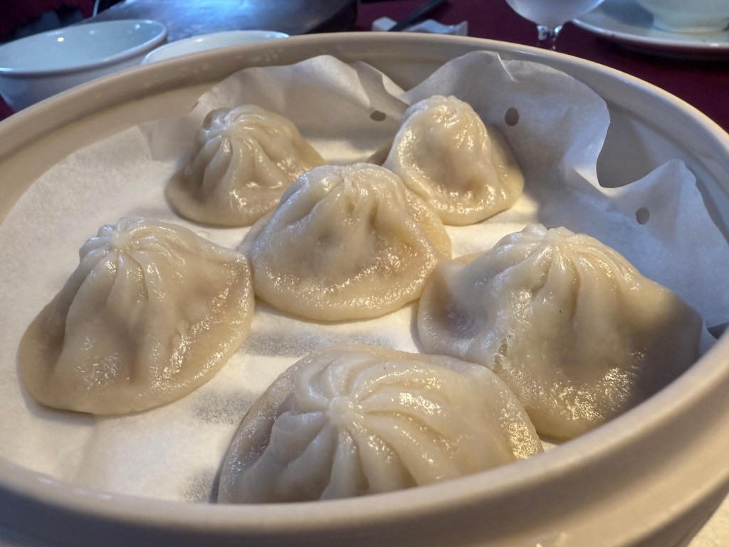 Up next were the Steamed Pork Soup Dumplings. I’ve been fortunate enough to have experienced some marvelous soup dumplings over the years. Two establishments stand out; one is the aforementioned Dim Sum Garden in Philadelphia, and the second is Din Tai Fung (one of the largest dumpling assortments I’ve ever happened upon) at Aria Casino in Las Vegas. My eyebrow-endowed weather colleague and I were particularly excited to order the Pork Soup Dumplings, a popular dim sum dish hailing from the Shanghai region. Unlike other dumplings stuffed with meat or vegetable fillings, these dumplings are filled with a liquid or broth. They are often made with a thinner wrapper than typical dumplings or buns and are usually a delightful explosion of broth and flavor upon first bite.