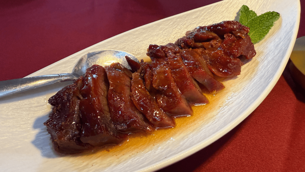 As I marveled and took more photos and videos, slowly making my way through the foyer, the rest of my party was seated at one of the large round tables in the dining hall, which looked capable of seating about eight people or so. These tables were meant for some serious dim sum experiences, in addition to the dining options for various meat and fish entrées. Thankfully, my table was down to clown with starter town, so we collectively decided on an order of the Sliced BBQ Roasted Pork, Steamed Pork Soup Dumplings, and Walnut Buns (I insisted after reading rave reviews on Google and Yelp about this particular menu item). We went three for three because that appetizer trio got straight 10s across the foodie boards!