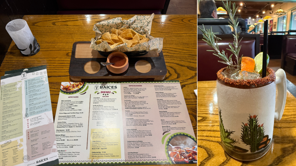 I coordinated with Maria for my visit so we could catch up as well, so I arrived at Raíces Mexican Cantina at 6 p.m. for a dinner visit. The restaurant is located in the northeast corner of the shopping center, south of M-59 on the west side of Mound Road. I enjoyed the traditional brick exterior, nothing that ‘Raíces’ visually popped along the banner of the front entrance. Stepping inside felt like a combination of Maria’s initial layout at Aldana’s, with inspiration from her creative evolution at La Niña Churrería. The space was much wider and bigger than her first two establishments, but maintained the bright, vibrant, and warm colors meant to transport you directly to Mexico to enjoy a traditional home-cooked meal.