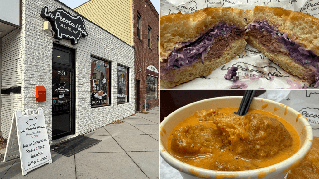 For Christmas, my coworker and foodie-at-arms, Juan, presented me with a gift card for an Italian deli known for its massive sandwiches: La Pecora Nera. I had heard of this establishment before and had passed two of its three locations in Birmingham and downtown Detroit several times, but never quite ventured in or had it set as my destination at the time. Now, armed with a $20 gift card, I was more than motivated to dedicate an adventure to the nearest location to my work. Last Friday, I embarked to La Pecora Nera in downtown Farmington to pick up a to-go order for lunch.