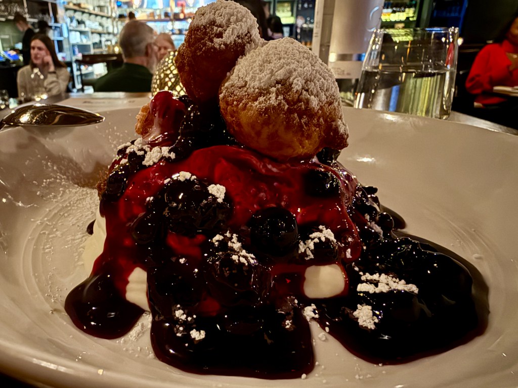 As the saying goes, when in Rome, do as the Romans do; so when dining at an authentic Romanian establishment where one of the two owners is a top-tier baker and pastry chef, you have to indulge in the dessert. It didn’t take much convincing from my server Christie and fellow staff members, who explained some of the Romanian classics on the dessert menu, including the Cremes, Alibinita (layered honey cake), and Papanași. As seen from the photo above, I decided on the Papanași, which is a Romanian and Moldovan fried pastry made from cheese dough.