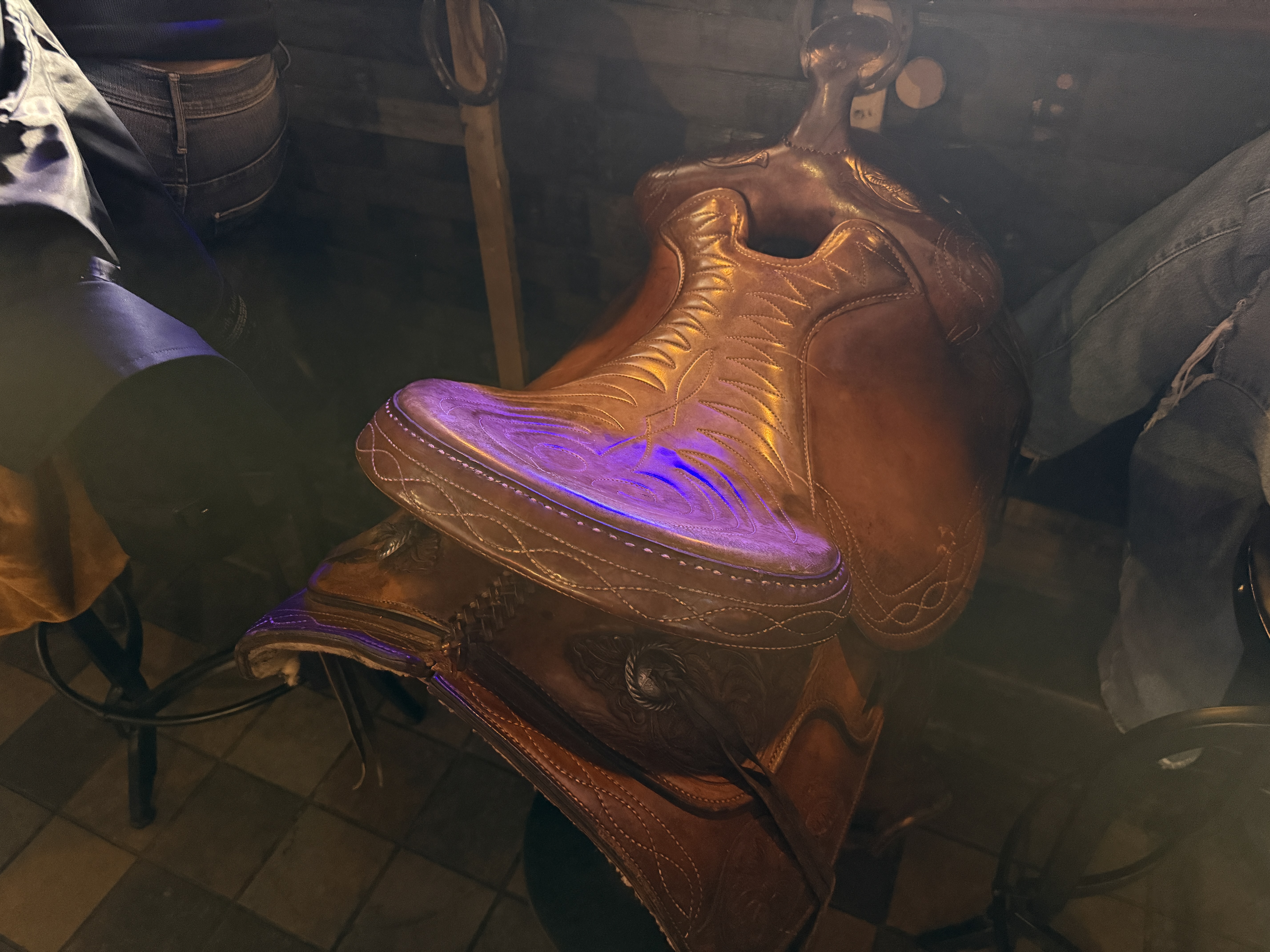 I met with one of the managers, Keith, and got an introduction and tour of the restaurant. Weaving through packed tables and throngs of people enjoying beers and cocktails at the multiple bars, I found a much larger space than anticipated, because the folks who own The Ranch Honky Tonk also own Grizzly Peak Brewing next door! The two establishments also share a kitchen, but you’ll know you’re on the The Ranch Honky Tonk side because the bar has unique display and seating options! Another cool facet of The Ranch is its basement bar space (which I would check out later after my meal) with a dance floor, DJ booth, tons of tables, and a lengthy bar.