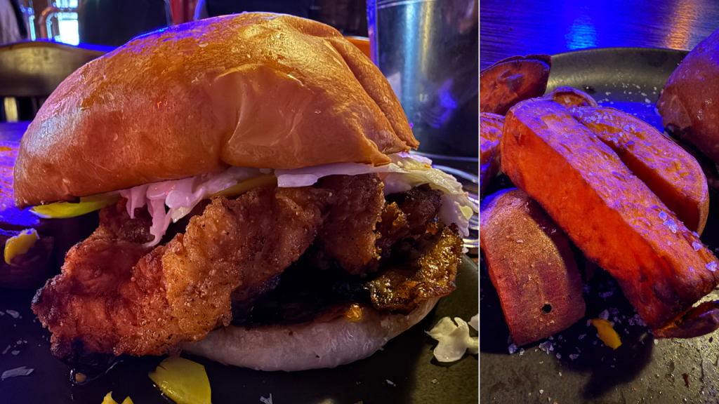 The chicken sandwich landed similarly to the quesadilla; it was really good all around. I really enjoyed the softness of the brioche buns, and I loved that these buns came from a local bakery as well. The breading on the chicken was also really enjoyable, with a deliciously moist, perfectly cooked interior underneath. The chicken breast was quite proportionate as well; I could only finish about half of the sandwich! I really like the enhancement sauces, but admittedly could have used a bit more heat in the jalapeño coleslaw. From the vast range of garlic, to spice, buttery pickles, and tender chicken, this rendition of the Nashville Hot Chicken holds its own.